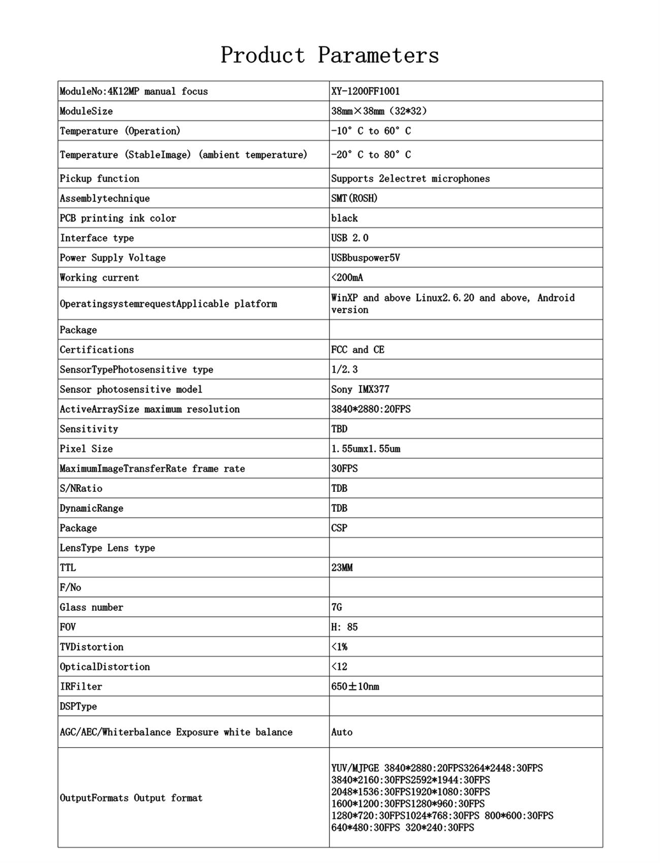 * Support video acquisition and recording, video conferencing, face recognition, infrared night vision,