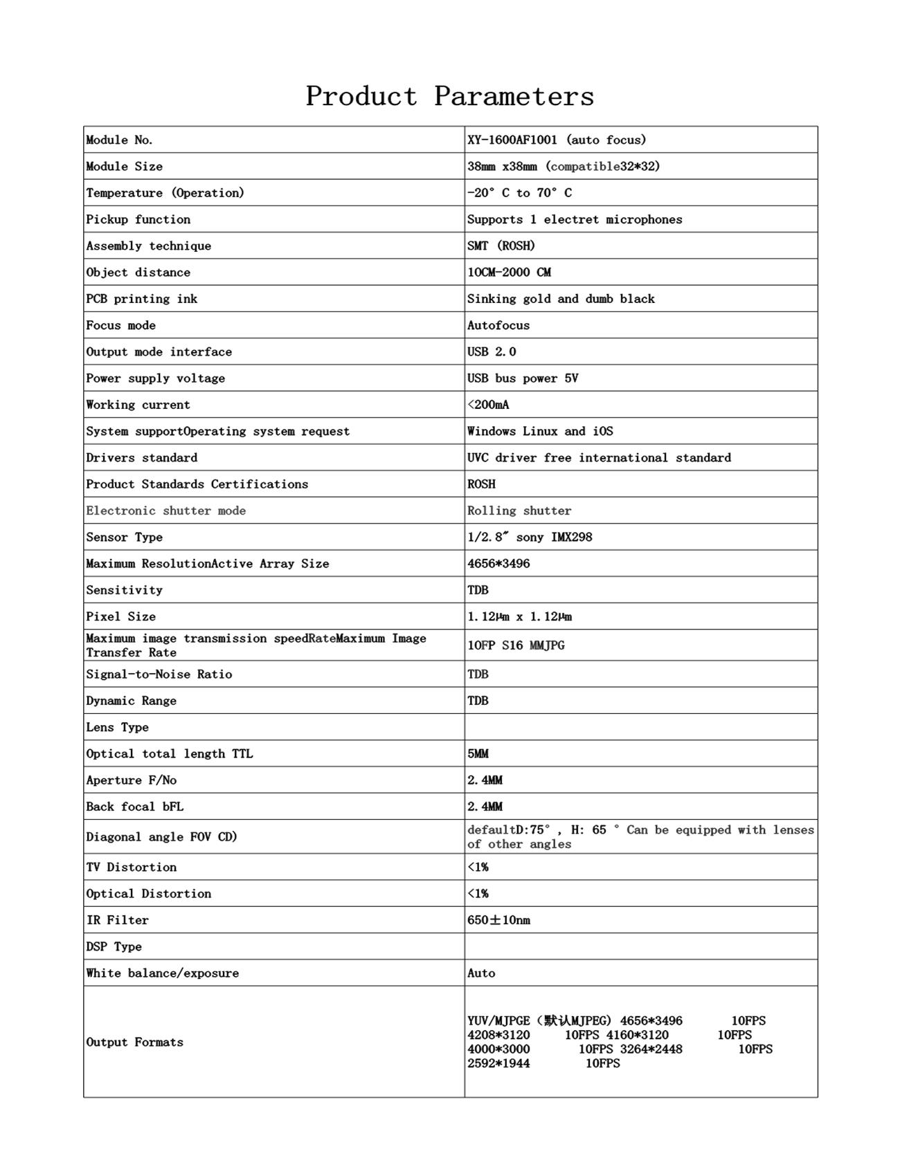 * Support video acquisition and recording, video conferencing, face recognition, infrared night vision,