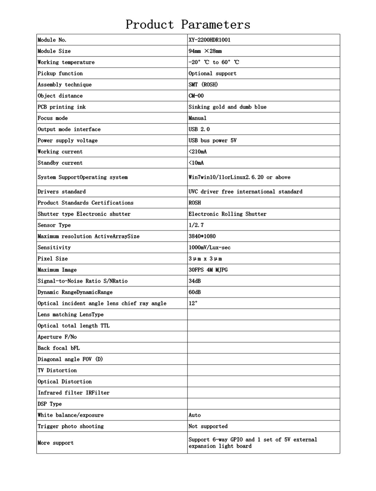 * Support video acquisition and recording, video conferencing, face recognition, infrared night vision,